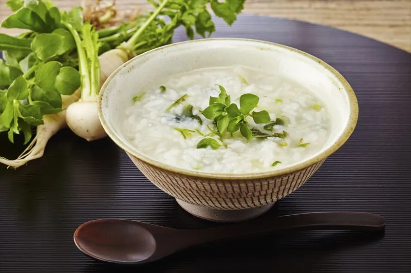 米1に対して水7の割合で炊き上げたお粥で、分量がそのまま名前になっています。